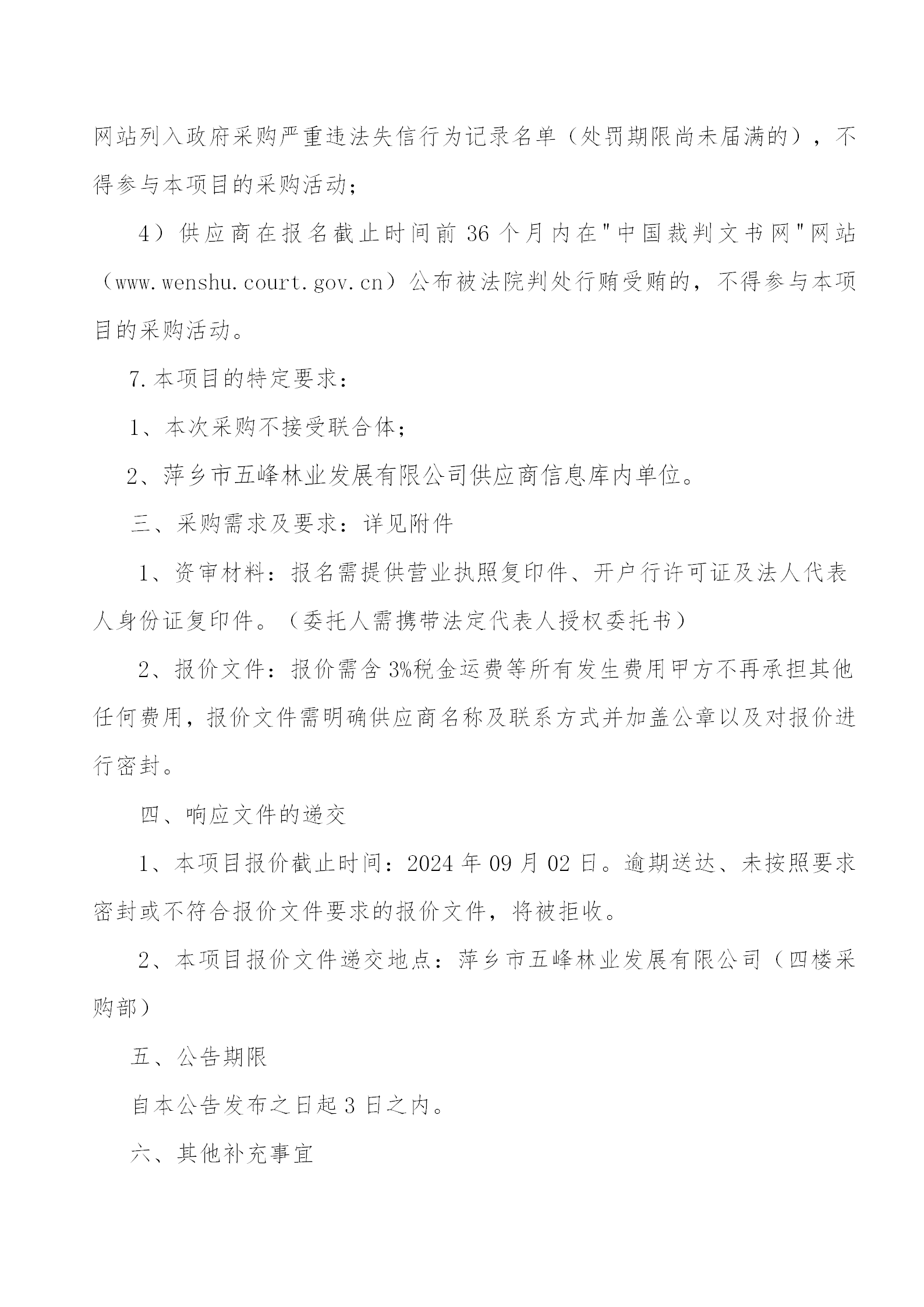 萍鄉(xiāng)市五峰林業(yè)發(fā)展有限公司2025年度供應(yīng)商招募啟事