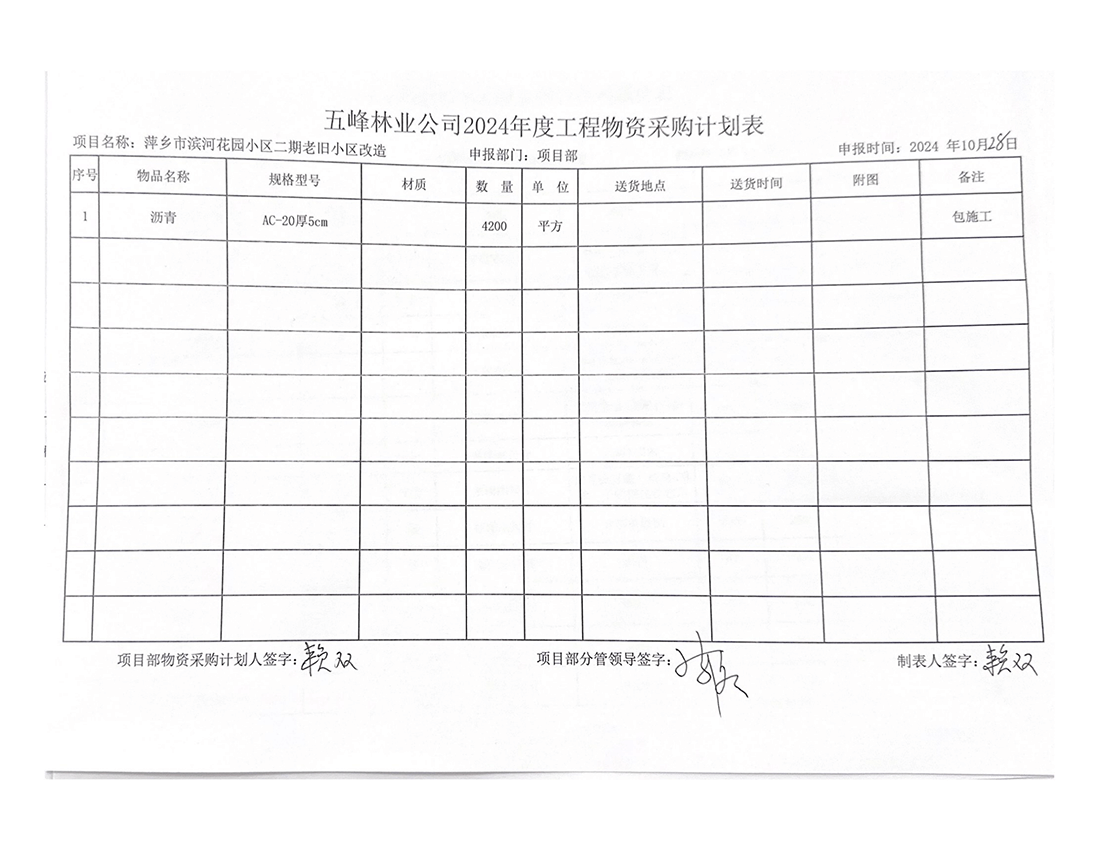 萍鄉(xiāng)市五峰林業(yè)發(fā)展有限公司現(xiàn)對(duì)“萍鄉(xiāng)市湘東區(qū)新棚里小區(qū)老舊小區(qū)改造項(xiàng)目材料采購(gòu)進(jìn)行公開詢價(jià)?,F(xiàn)歡迎符合資格條件的供應(yīng)商前來(lái)響應(yīng)。