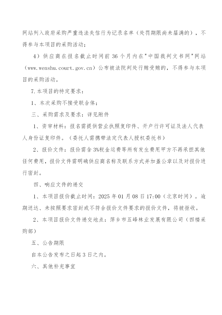 萍鄉(xiāng)市五峰林業(yè)發(fā)展有限公司2025年度供應(yīng)商招募啟事